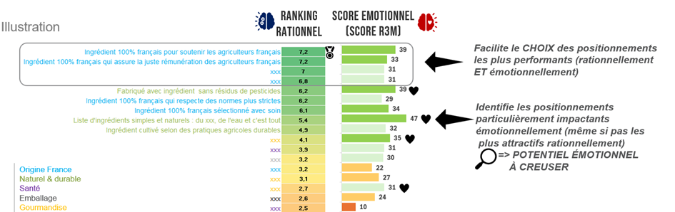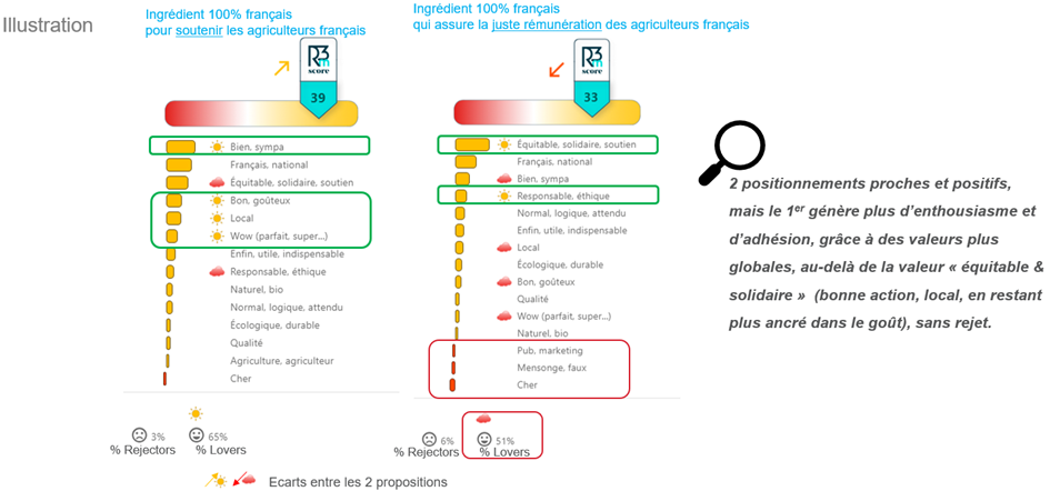 Nous recommandons une approche simple qui repose sur un double éclairage rationnel et émotionnel, afin de hiérarchiser les différentes formulations mais aussi comprendre les ressorts de l'adhésion.
